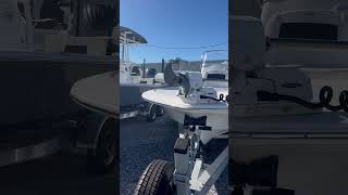- All standard model features plus hull sides whisper gray, hull bottom whisper gray, bow casting chair seat base only, stern casting chair seat base only, helm pad with Tidewater logo, auxillary charging system, 24V Minn Kota Riptide Fortrex trolling motor.
