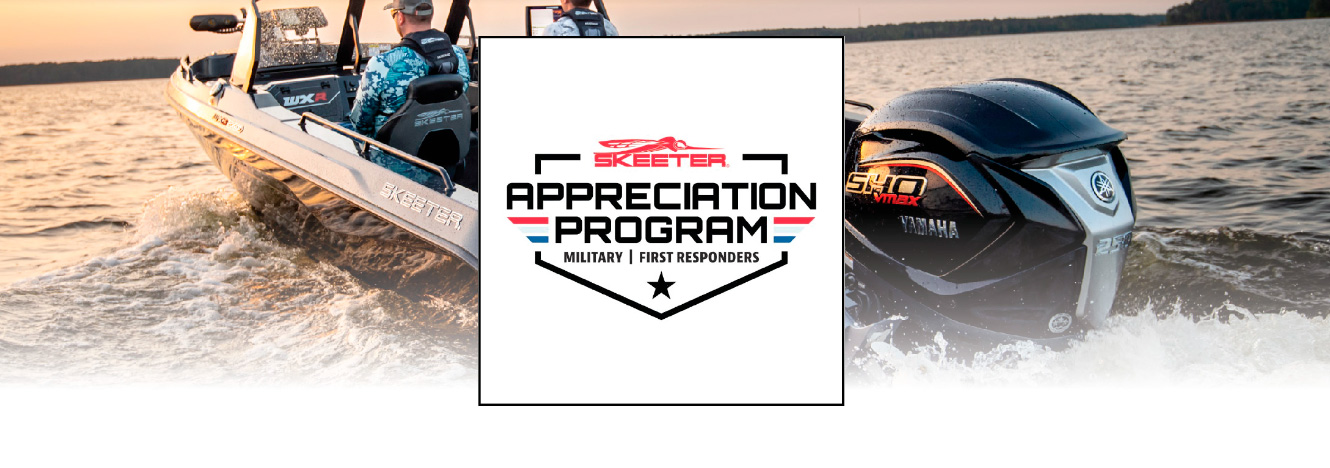 ©2025 *Nationally Advertised Price; actual sales price determined by dealer. Price does not include freight, dealer prep, tax, title, and license. **Manufacturer's Suggested Retail Price (MSRP). Prices may vary due to supply, location, freight, etc. Actual prices are set by the dealer. ©2025 Skeeter Products, Inc. All rights reserved. This document contains many of Skeeter's valuable trademarks. It may also contain trademarks belonging to other companies. Any references to other companies or their products are for identification purposes only, and are not intended to be an endorsement. Remember to observe all applicable boating laws. Never drink and ride. Dress properly with a USCG-approved flotation device and protective gear. Boats may be shown with optional equipment. See your local Skeeter dealer for complete details.